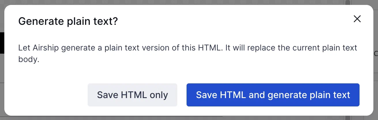 Skip the tedious process of creating plain text versions of your email messages. Let Airship do it!