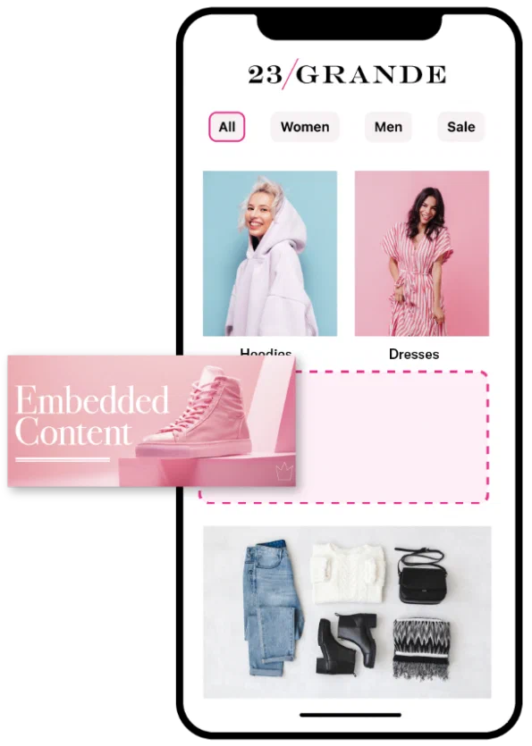 Embedded Content is an alternative SceneA mobile app or web experience of one or more screens displayed with fully native UI components in real time, providing immediate, contextual responses to user behaviors. Scenes can be presented in full-screen, modal, or embedded format using the default swipe/click mode or as a Story. They can also contain survey questions. format that can be displayed on any app screen in a view defined by an app developer. It can also be presented in Story format.