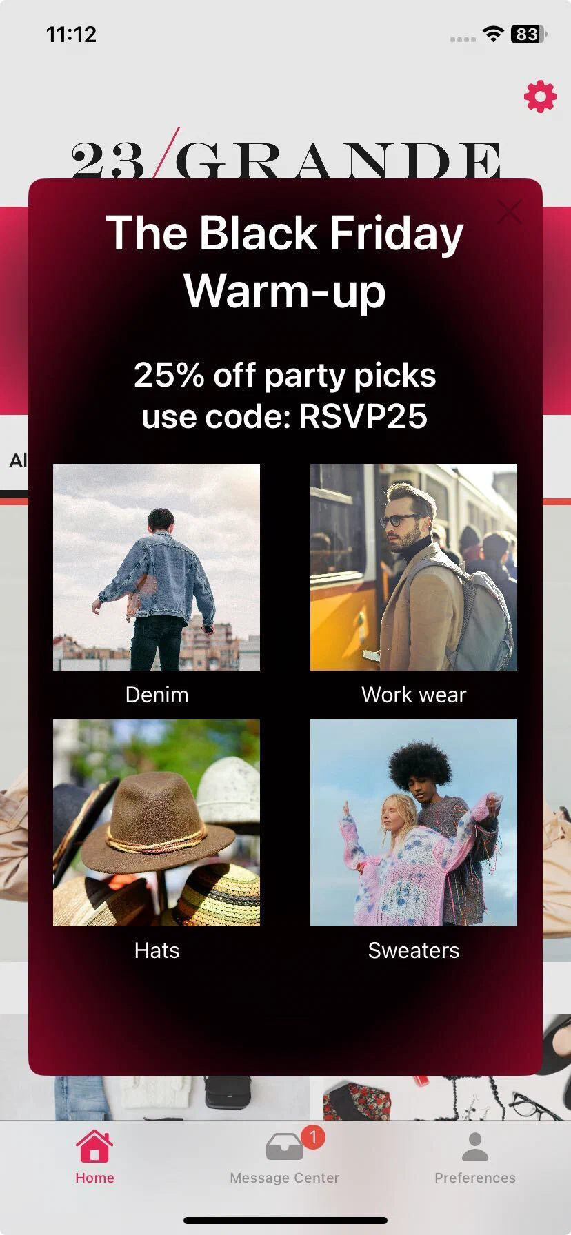 When configuring a screen or the Media element for an image in a SceneA mobile app or web experience of one or more screens displayed with fully native UI components in real time, providing immediate, contextual responses to user behaviors. Scenes can be presented in full-screen, modal, or embedded format using the default swipe/click mode or as a Story. They can also contain survey questions., assign an action to make it behave like a button.