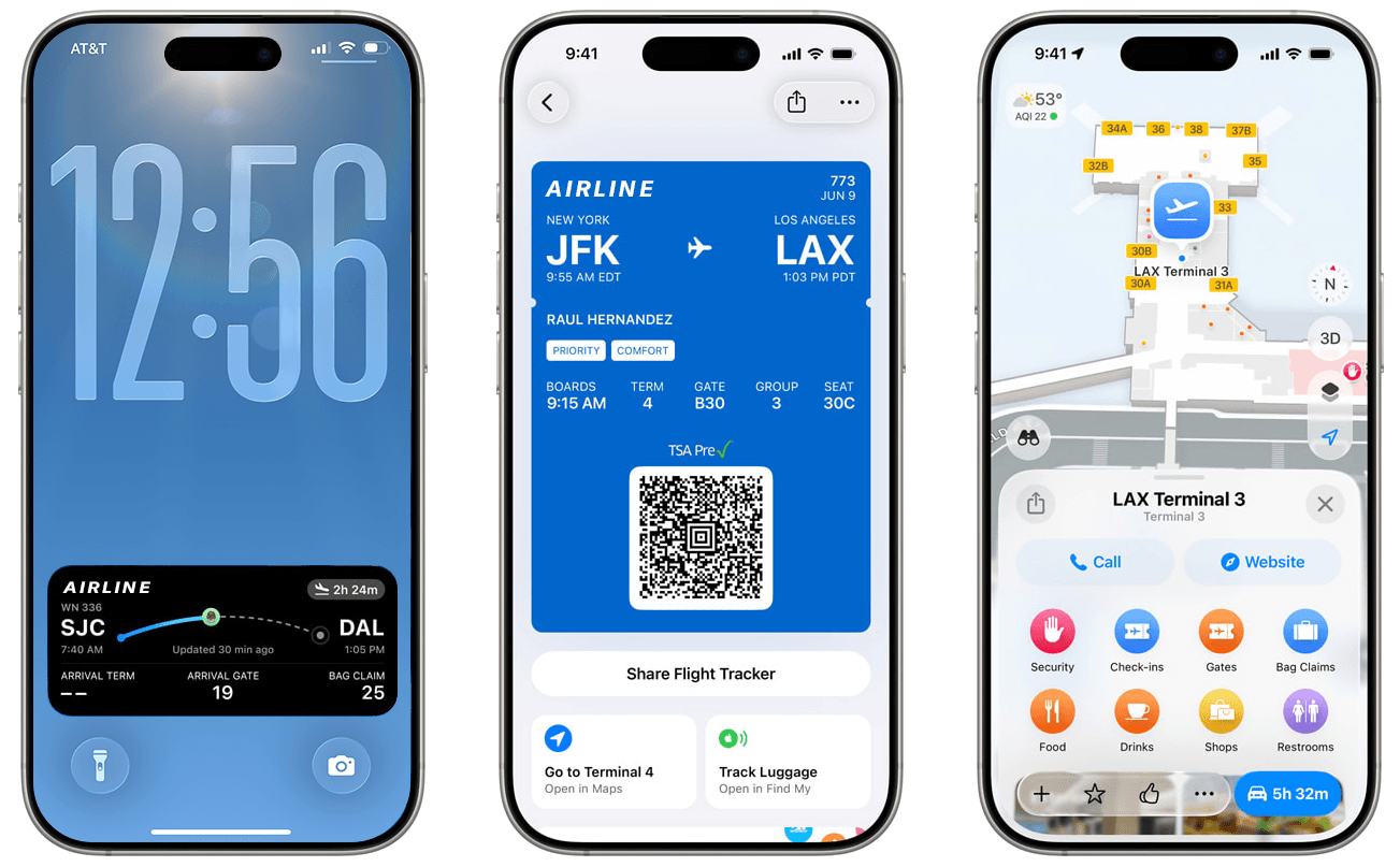 - Live Activities give real-time flight updates and can be shared so friends and family can follow along.