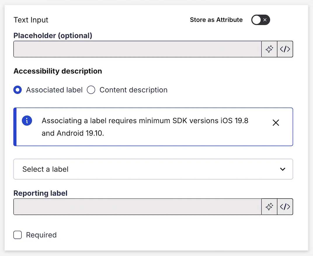 When using a Text element as the label for an Email, SMS, or Text Input field, you can now set it as the field’s accessibility description. A screen reader will read out the label when the user is focused on the input field, making it easier for an assistive technology user to understand what data should be entered.