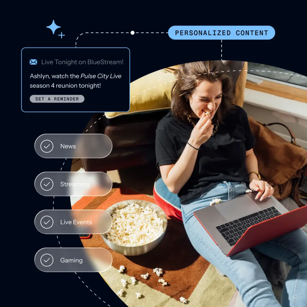 Use real-time behavior, preferences, and viewing history to trigger personalized recommendations that keep audiences coming back.