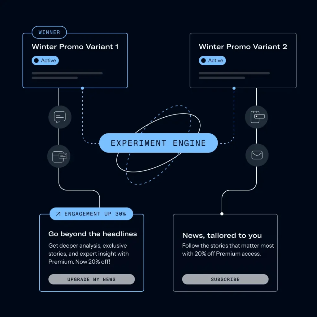 Experiment with timing, creative, content positioning, and channel mix to amplify the highest-performing promotions instantly.