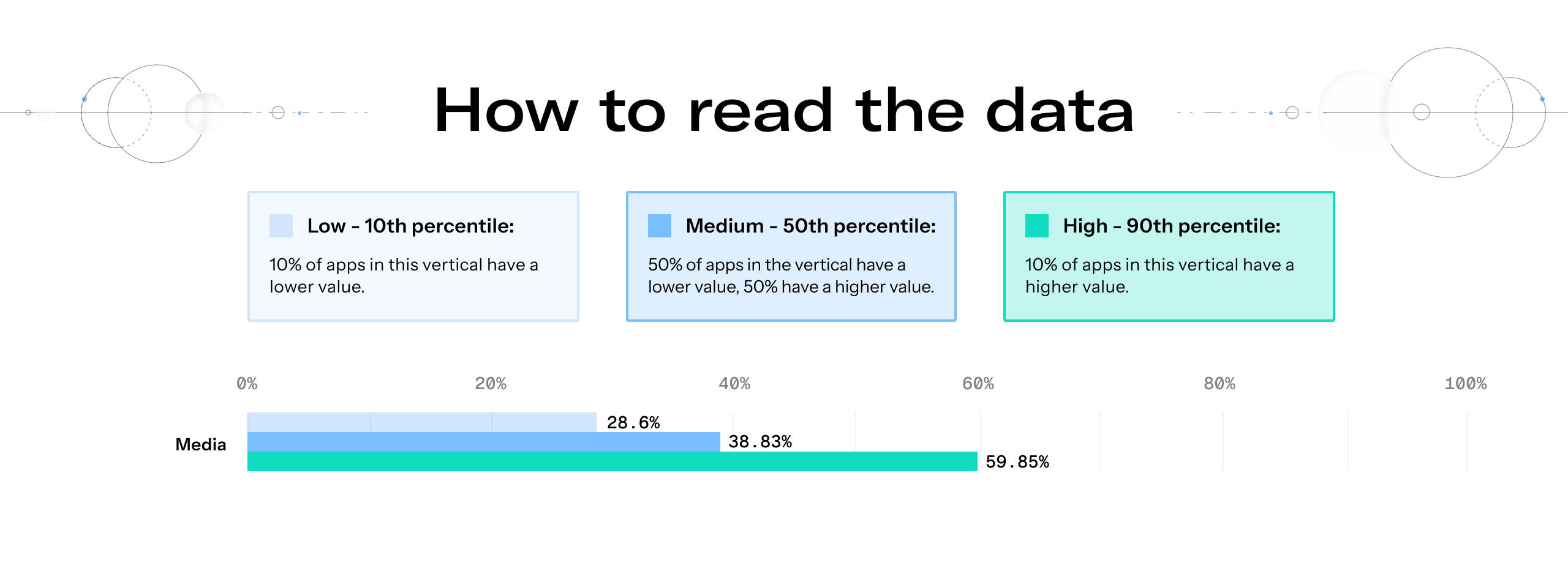 • High (90th percentile): The top tier. Only 10% of apps in your vertical achieved a higher value.