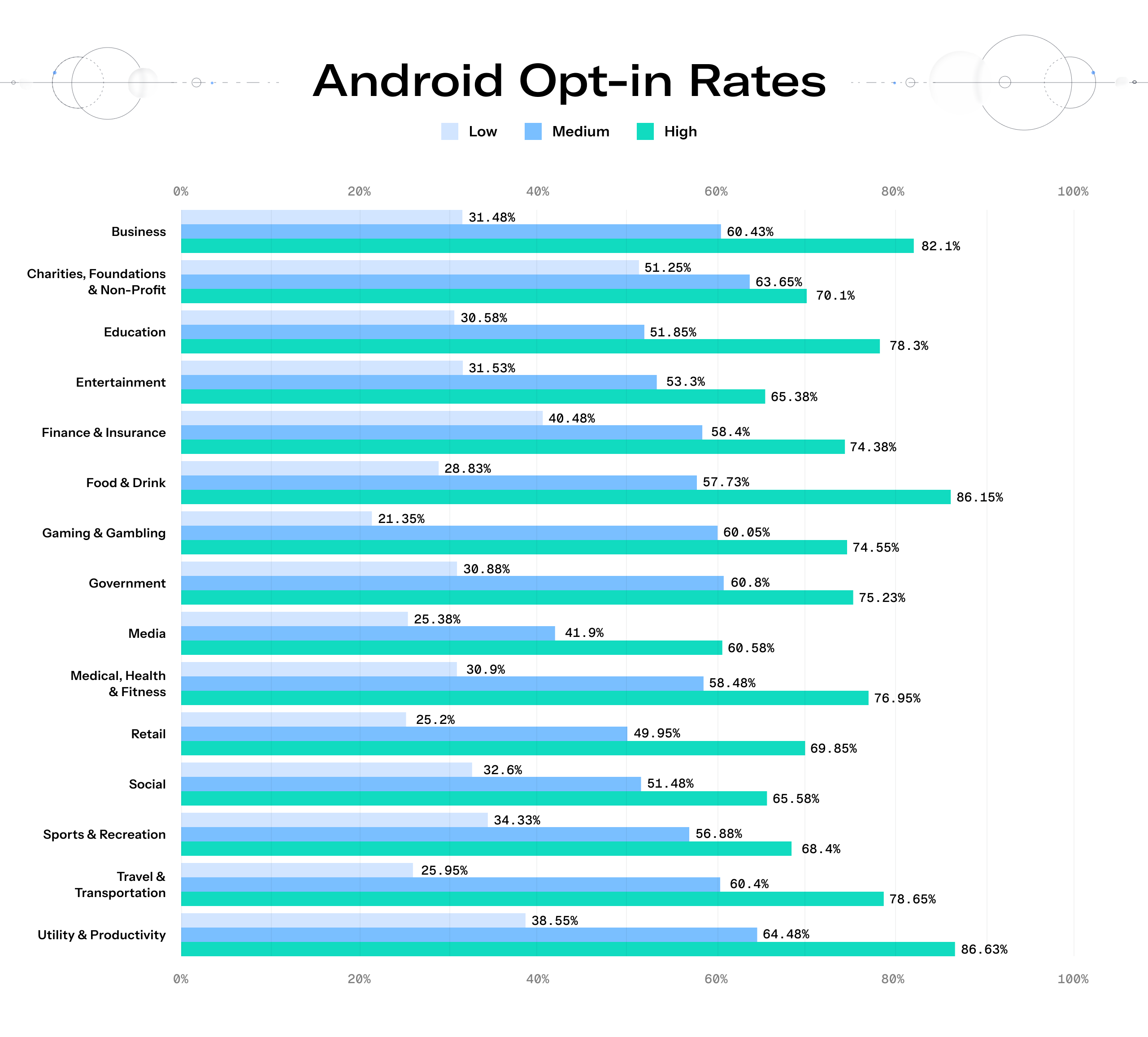This data is designed to help you benchmark three critical engagement metrics: opt-in rates, direct open rates, and the average monthly push notifications per user.