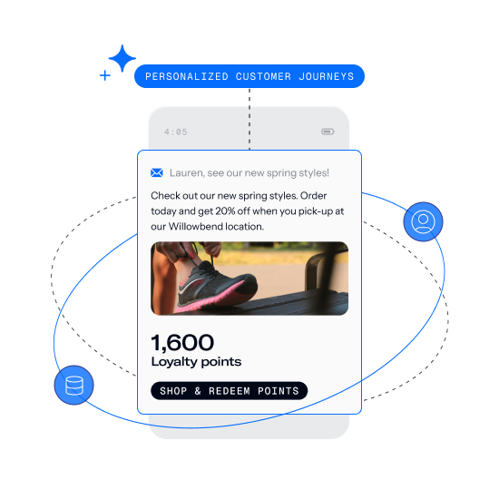 Develop compelling, personalized customer journeys that layer in real-time contextual cues and customer data, such as loyalty points, location, and weather. Target and generate more contextually relevant and engaging experiences for your customers in real-time based on unique profile and behavioral data.