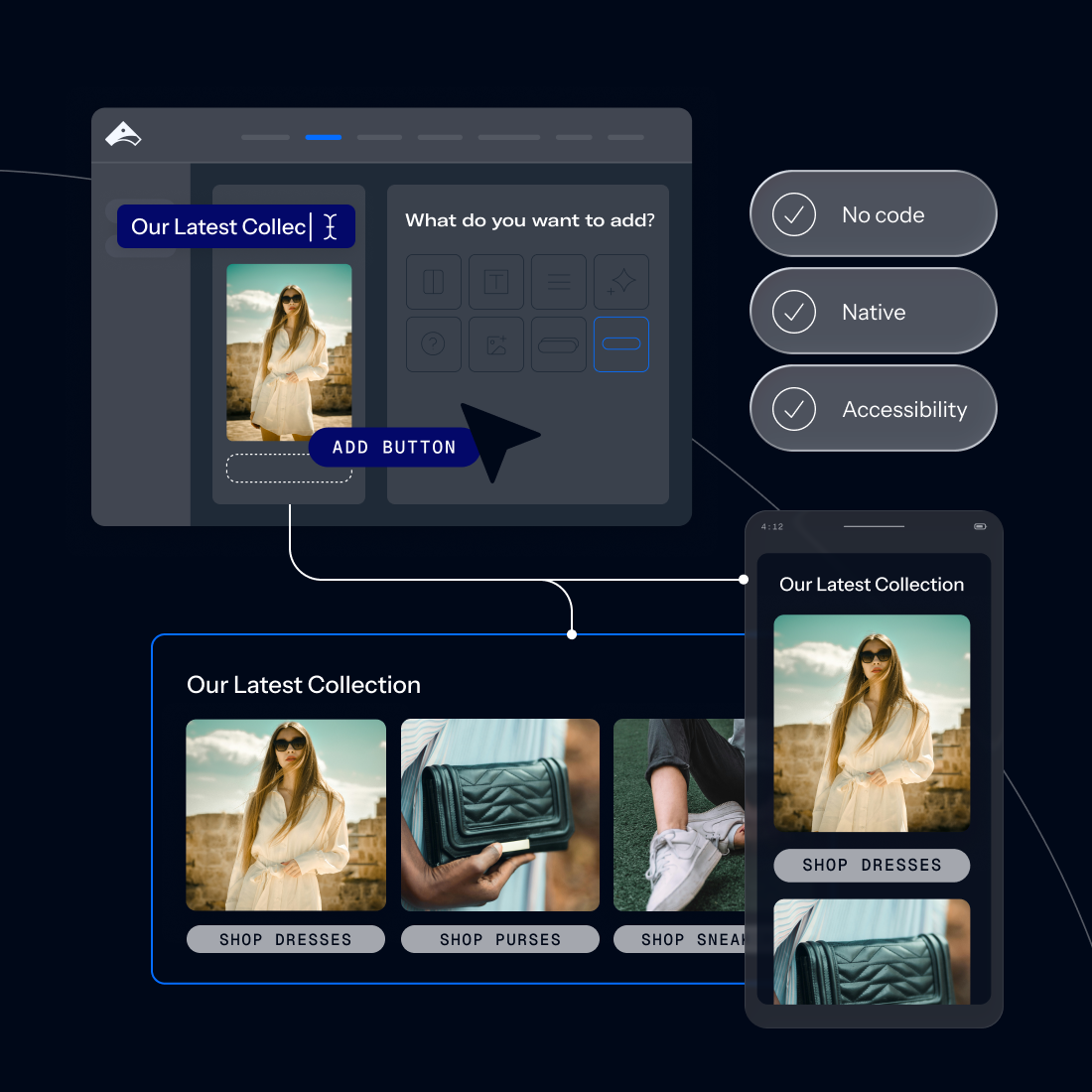 Create fully native app and website experiences instantly without engineering support using our powerful experience accelerator and editor. Build anything you can imagine without pre-defined templates or limits, optimizing every moment to drive repeatable conversions.