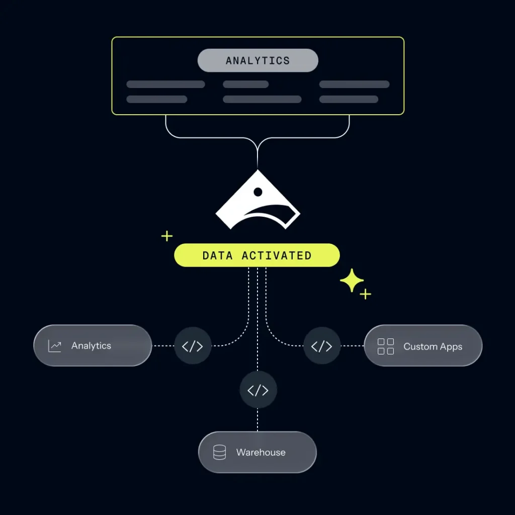 Route custom events and data to your warehouse to train models, or to custom apps to trigger workflows.