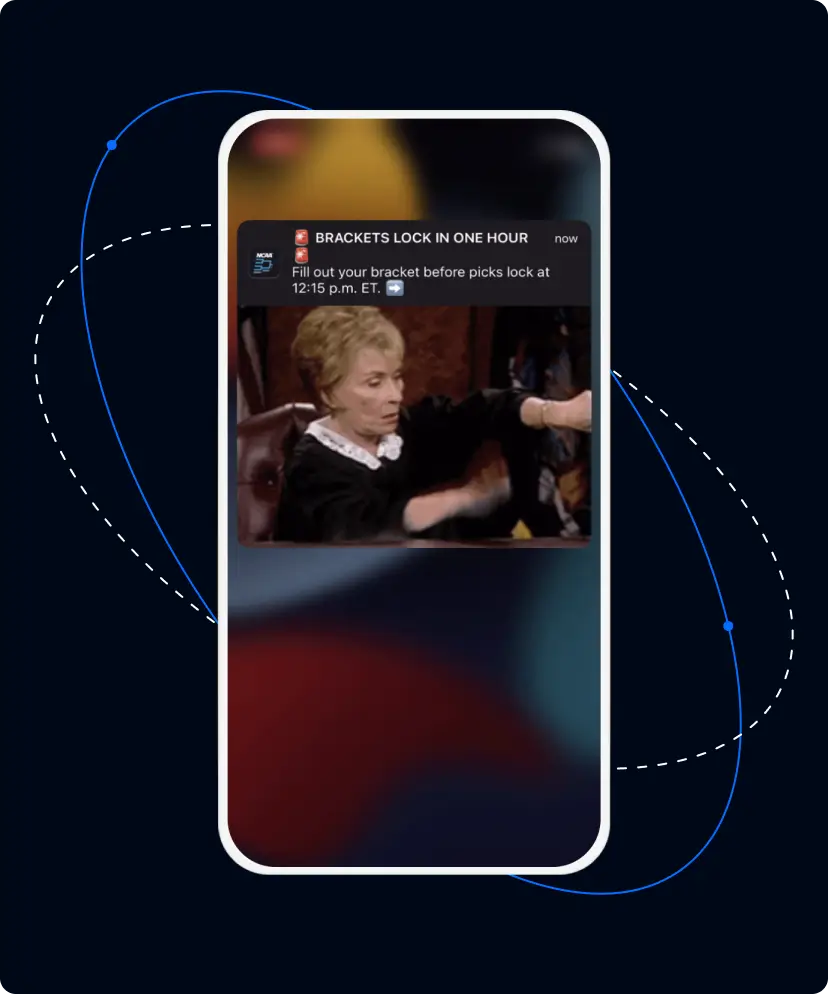 Push notifications were central to TNT Sports’s March Madness app experience, emphasizing special alerts for bracket picks, game starts, and must-see moments. The team knew that a well-planned onboarding experience was key to setting themselves up for success during the tournament itself. With Airship’s app experiences, TNT Sports emphasized the value and importance of opting-in to push notifications from the beginning, paving the way for richer experiences throughout the tournament.