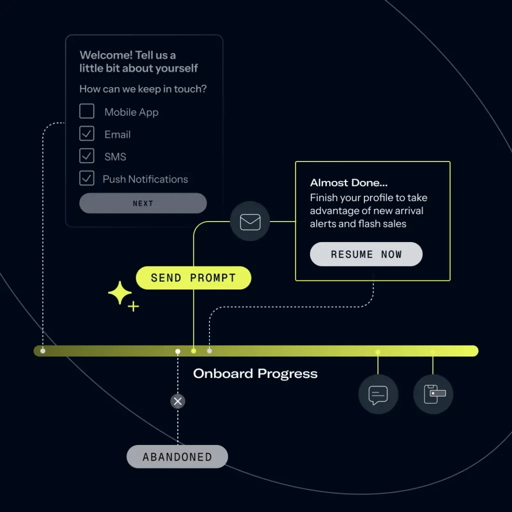 Deliver seamless onboarding experiences across app and web that identify users early, capture critical opt-ins and preferences, and accelerate long-term retention with measurable outcomes.