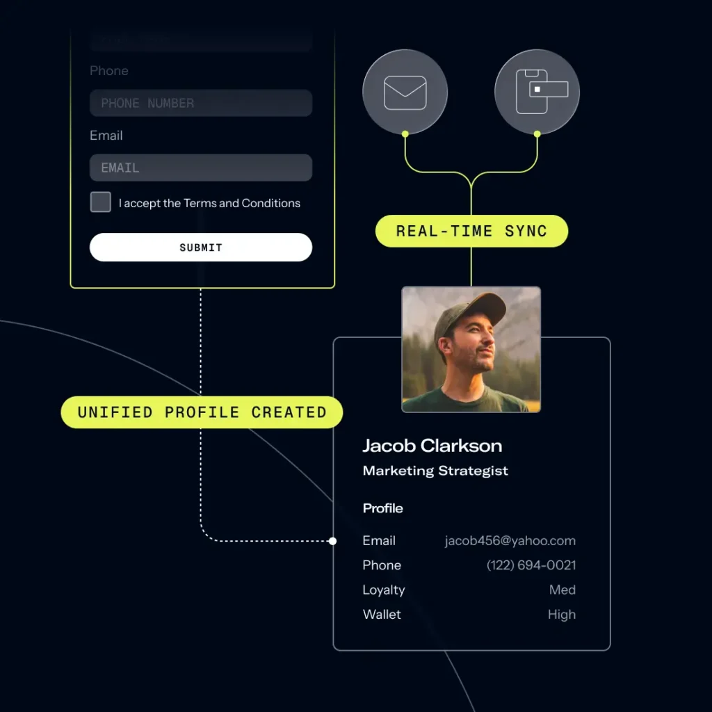 Convert anonymous visitors into known customers using native interactions across app and web. Capture email, phone, and loyalty details the moment they register, sign in, or check out. Feed downstream personalization, analytics, and experiments with reliable identity data from day one.