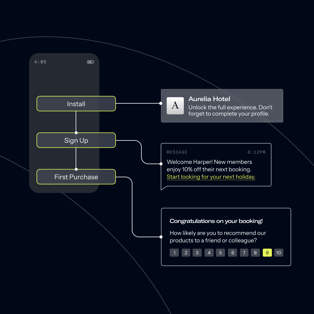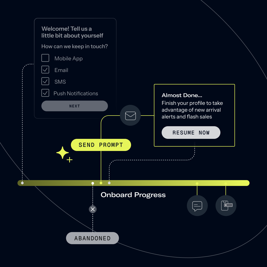 Deliver seamless onboarding experiences across app and web that identify users early, capture critical opt-ins and preferences, and accelerate long-term retention with measurable outcomes.